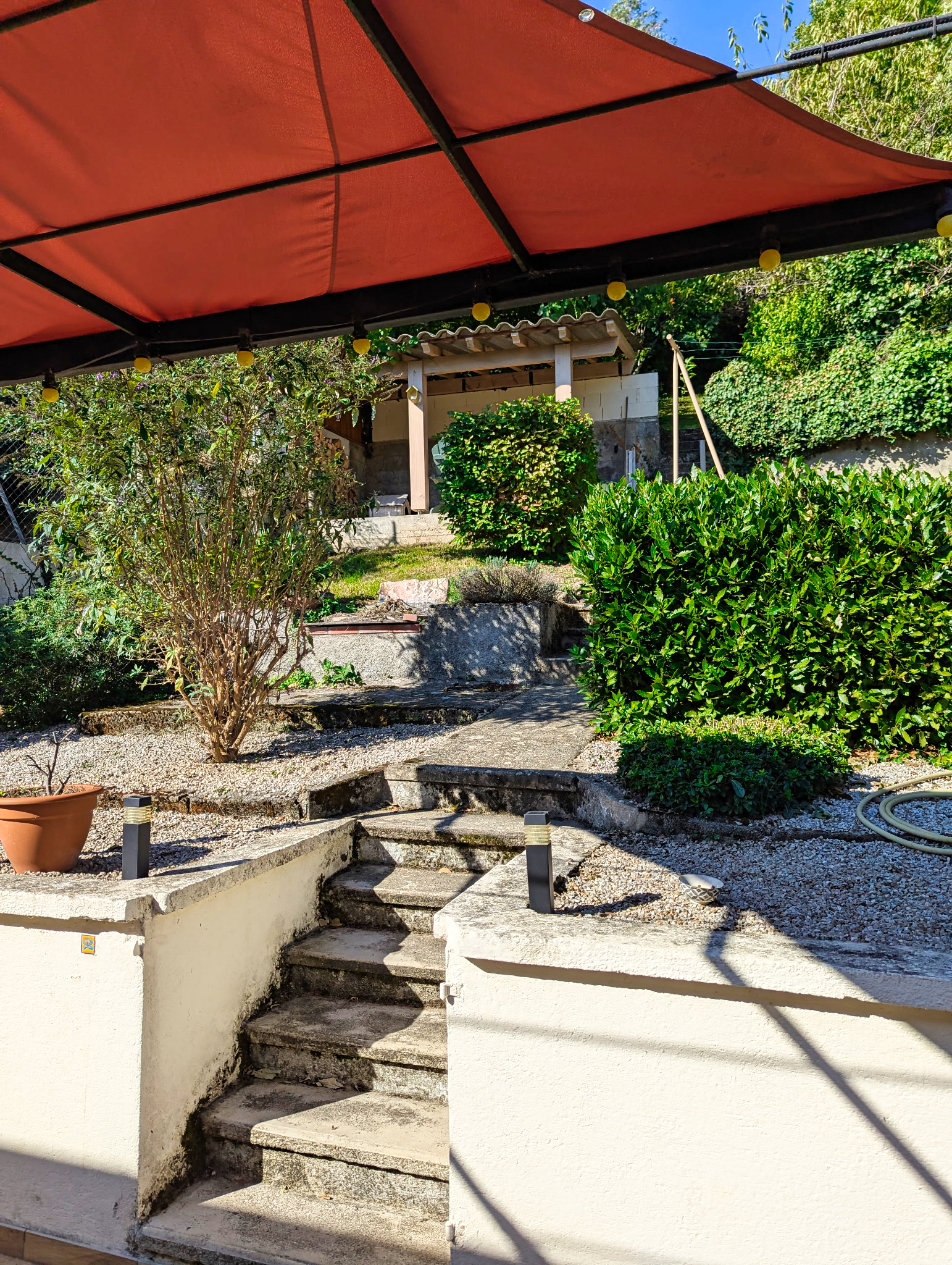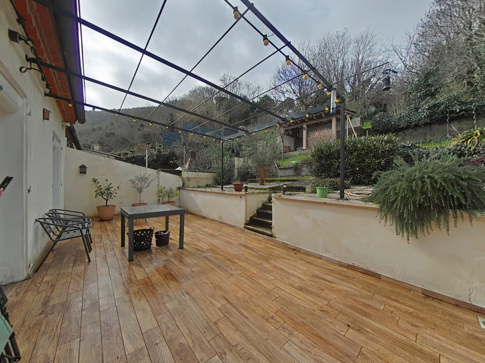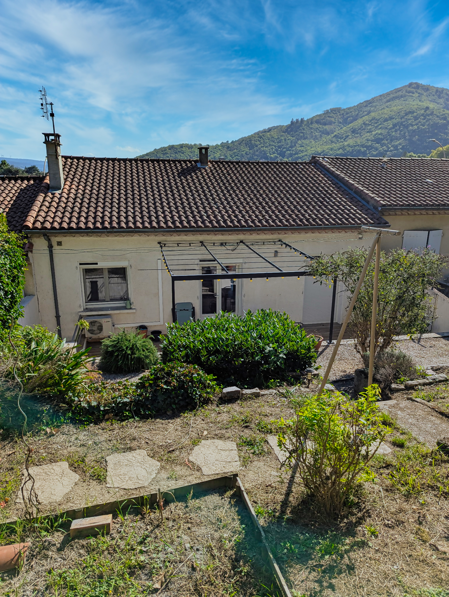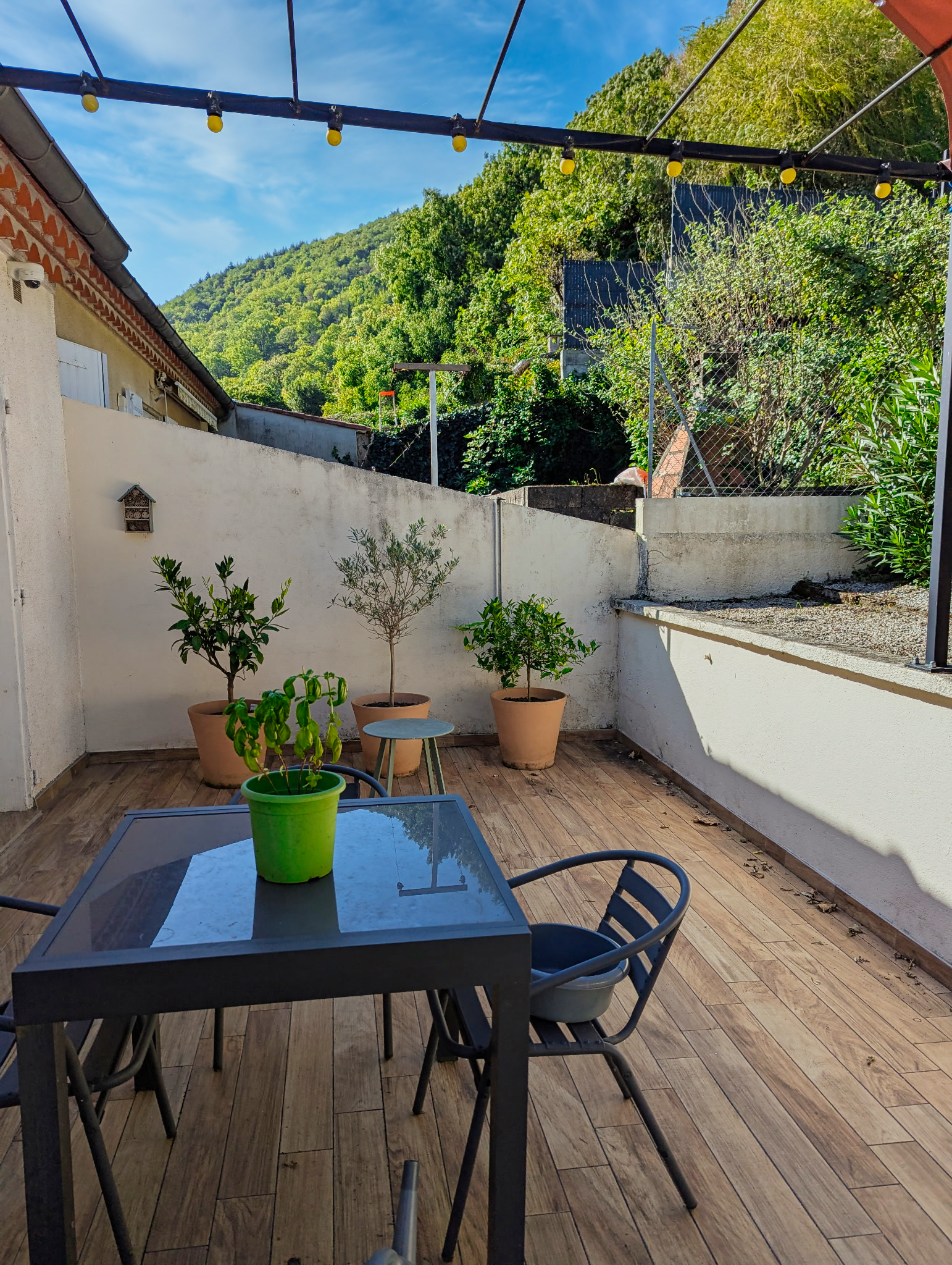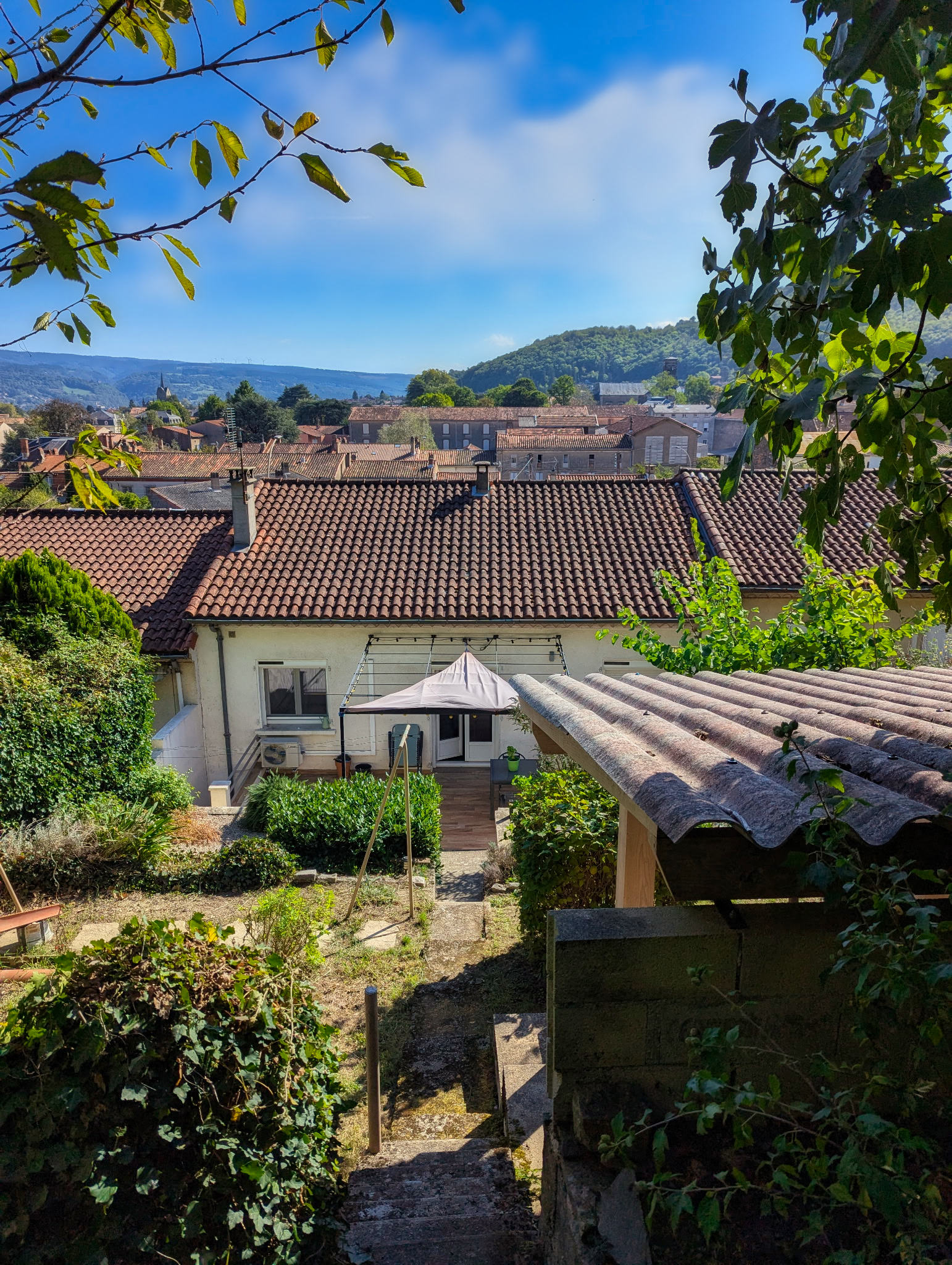 Située près du centre, cette maison bénéficie d’une terrasse ensoleillée et d’un jardin en escalier très verdoyant.